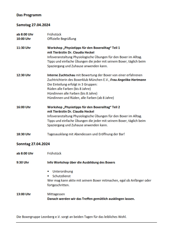 Am letzten Wochenende im April 2024 haben wir für die Boxer-Züchterin Claudia Pfeiffer-Nagel und Ihren Zwinger von Exkalibur ein großes Boxertreffen veranstaltet.